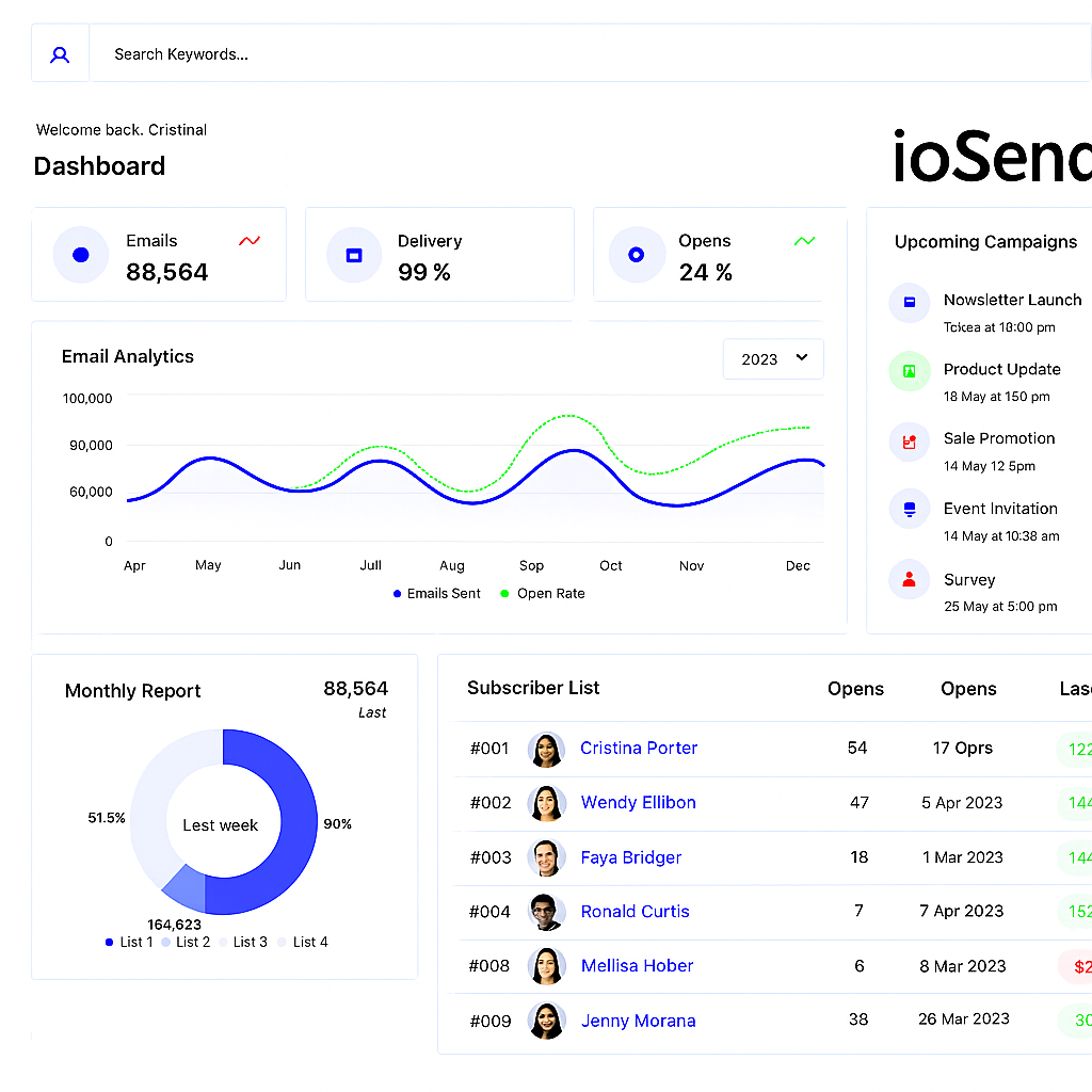 Create and optimize campaigns with iosend’s smart marketing suite. Build beautiful emails with the drag-and-drop builder, personalize content with dynamic fields, and run A/B tests to improve engagement. Manage suppression lists, automate domain warm-up, and track detailed analytics that connect deliverability, engagement, and campaign performance - all in one unified dashboard.